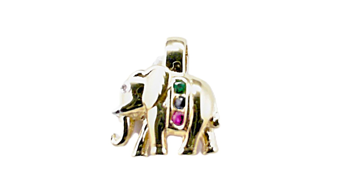 Artikelname/Motiv ElefantArtikelbezeichnung Anhänger ClipLegierung 585 GGBesatz Diamant Safir Rubin SmaragdStärke 5,5