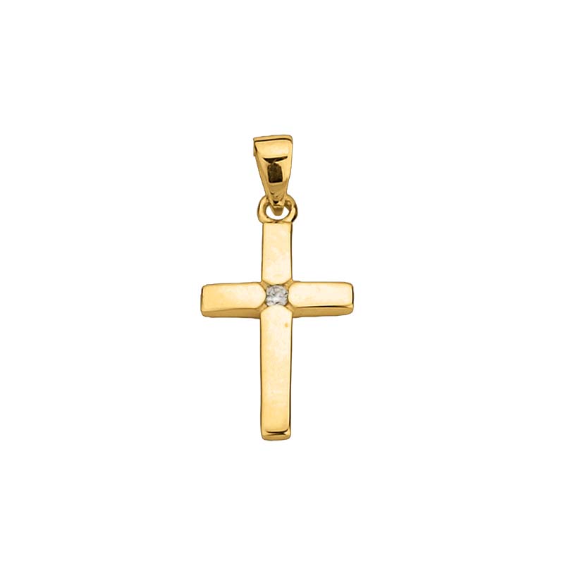Artikelbezeichnung Anhänger KreuzLegierung 585 GGBesatz DiamantAnzahl Diamanten 1Diamantgewicht 0,018 ctDiamantqualität W pi1Stärke 1,5