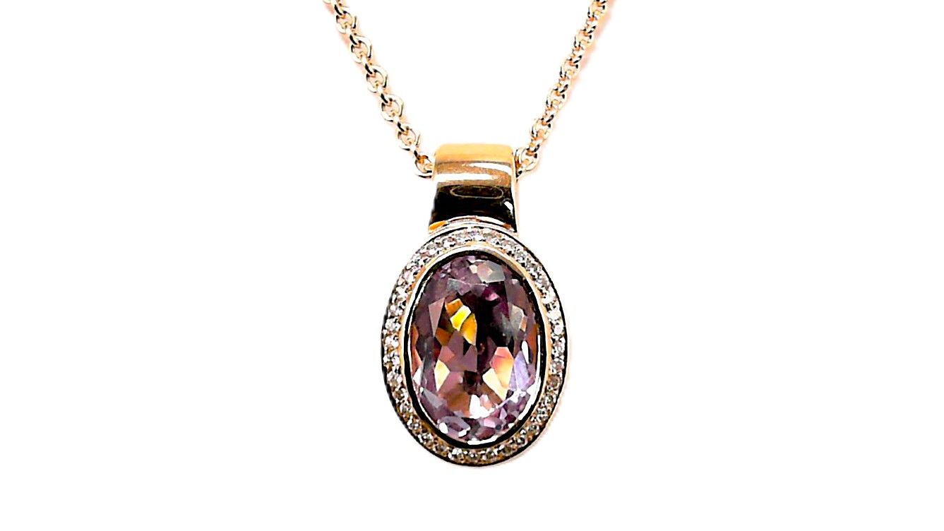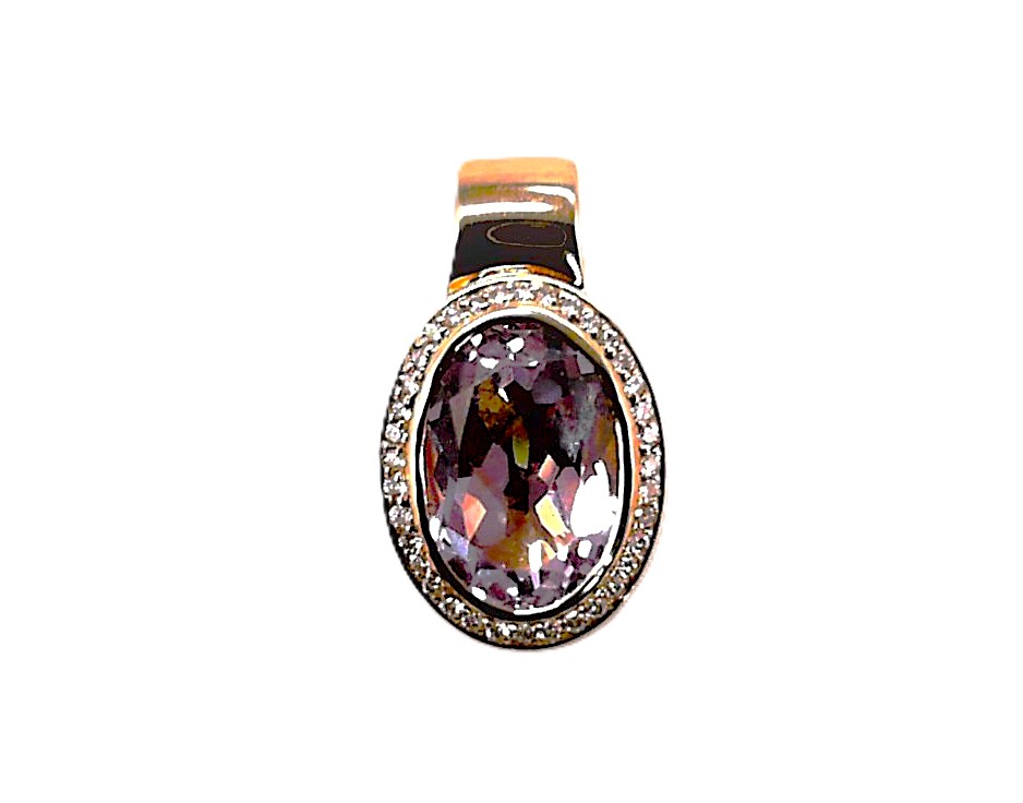 Anhängerclip, Anhänger Mehrsteiner, 585 Roségold, Amethyst Diamant, Farbsteine, 36, 0,18 ct, W si, 8,