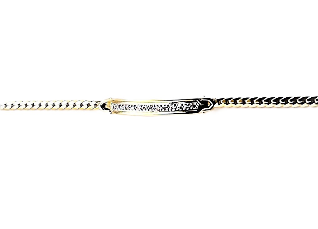 Artikelbezeichnung ArmbandLegierung 585 GGBesatz DiamantMachart Panzer oval gezogenAnzahl Diamanten 12Diamantgewicht 0,12 ctDiamantqualität W pi1Länge 19,5Stärke 4