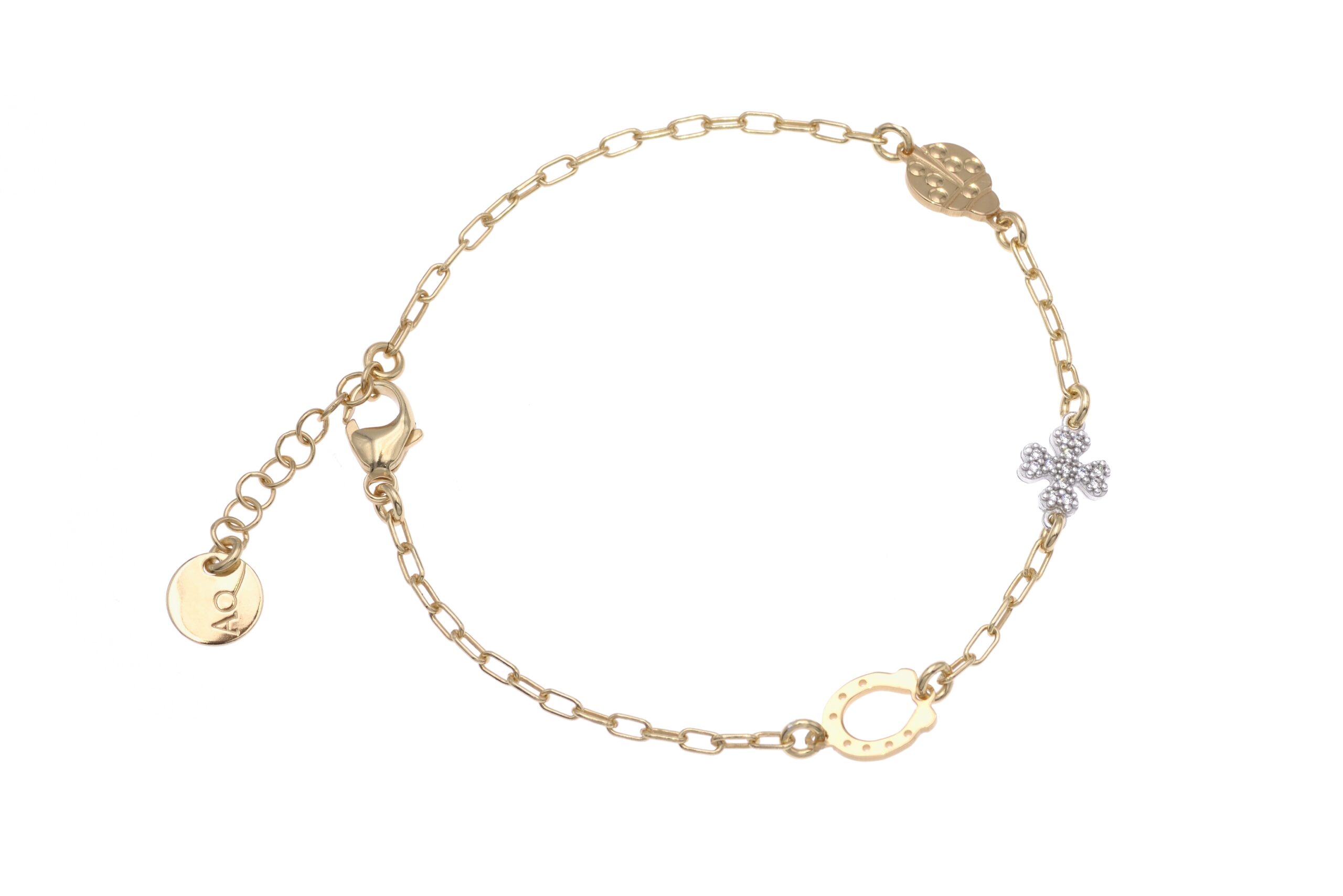 Armband, 925 AG bic. gelb/weiss, Zirkonia, Anker, 18, 2, 2,