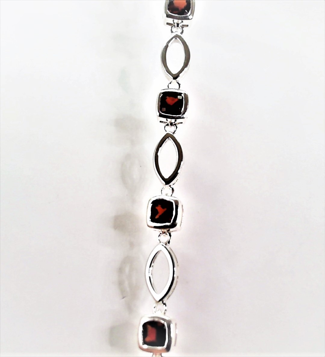 Artikelname/Motiv FarbsteineArtikelbezeichnung ArmbandLegierung 925 Ag rhodiniertBesatz GranatMachart FantasieLänge 19,5Stärke 4