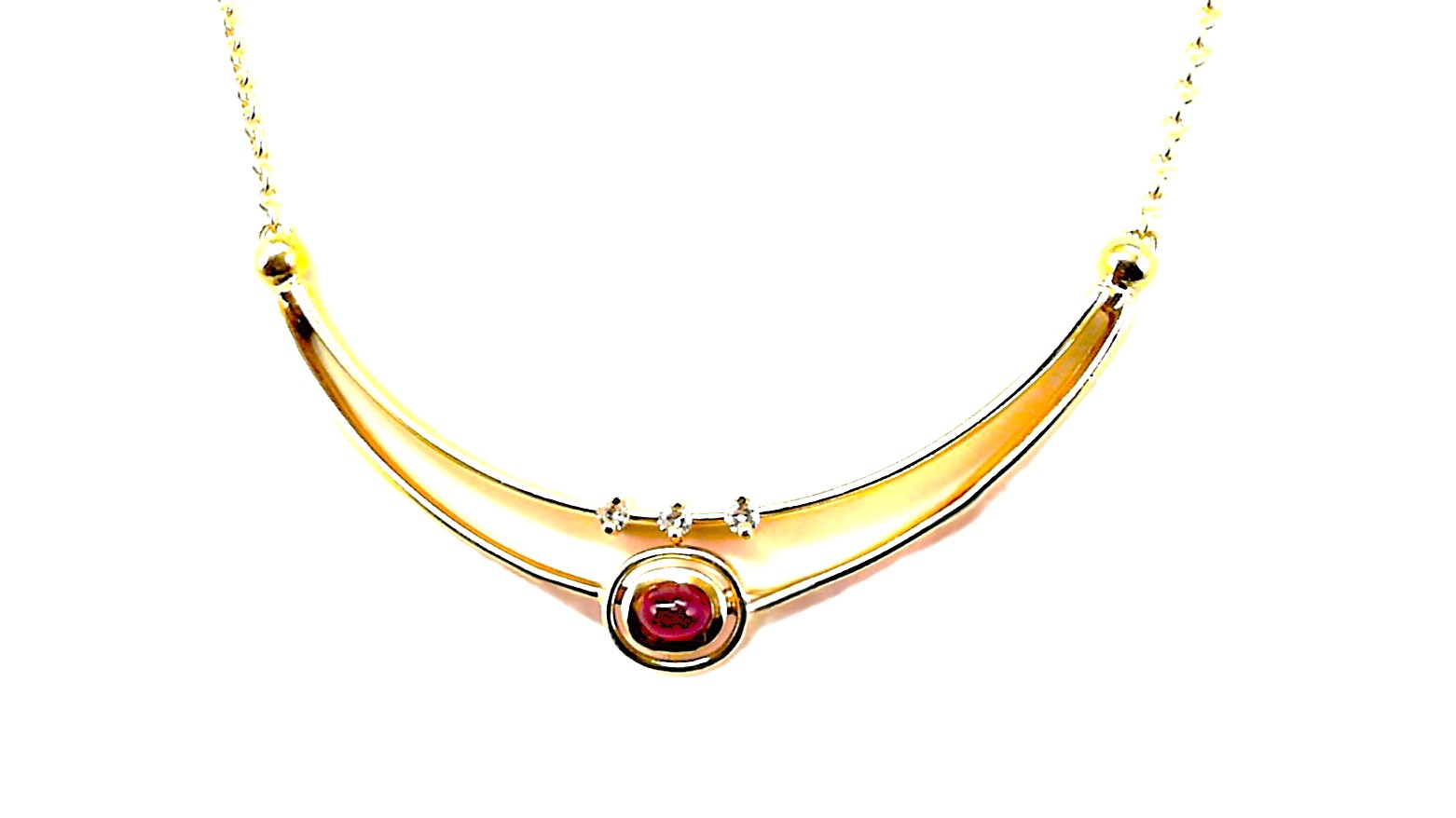 Artikelbezeichnung Collier MehrsteinerLegierung 750 GGBesatz Diamant RubinMachart RundankerAnzahl Diamanten 3Diamantgewicht 0,06 ctDiamantqualität TW vvs1Länge 42