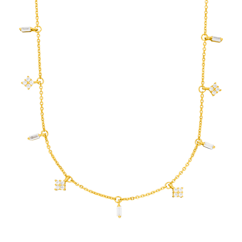 Collier Mehrsteiner, 925 AG gelb vergoldet, Zirkonia, Anker gefeilt, Länge: ㌹, Länge+: 5, Stärke: 0,8