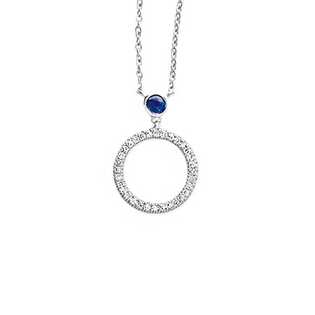 Artikelbezeichnung Collier mit BehangLegierung 585 WGBesatz Safir DiamantMachart AnkerAnzahl Diamanten 38Diamantgewicht 0,05 ctDiamantqualität W siLänge 42Stärke 0,7