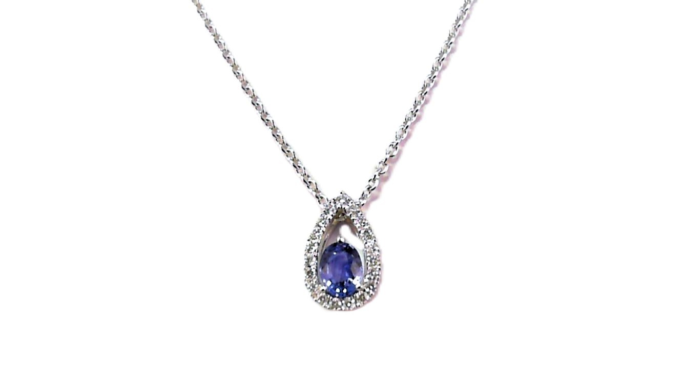 Collier mit Behang, 750 Weißgold, Diamant Safir, Rundanker, 19, 0,11 ct, TW si, 42, 3,