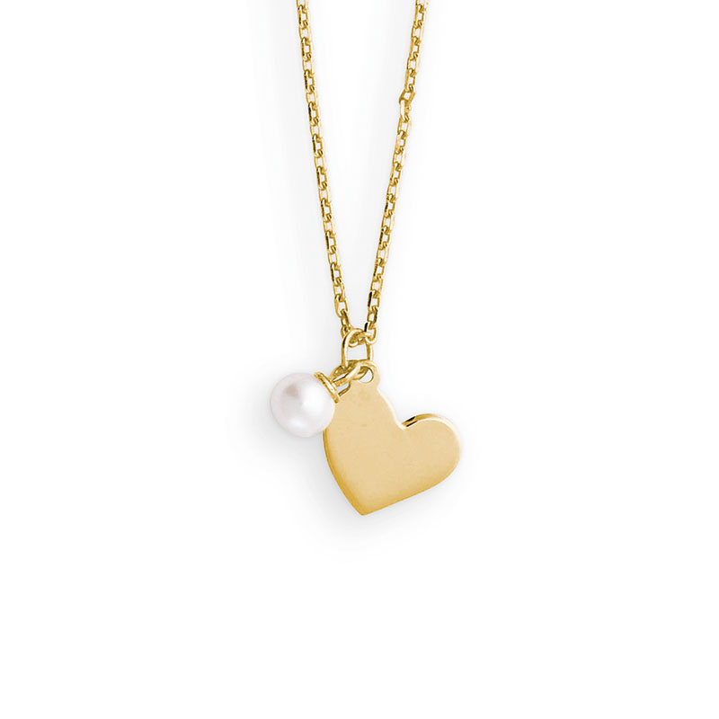 Herz, Collier mit Behang, 585 GG, Süßwasser Zuchtperle, Anker gefeilt, Länge: 42, Länge+: 3, Stärke: 0,7
