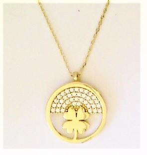 Artikelname/Motiv KleeblattArtikelbezeichnung Collier mit BehangLegierung 333 GGBesatz ZirkoniaMachart Anker gefeiltLänge 42Länge Zusatz 3Stärke 0,9