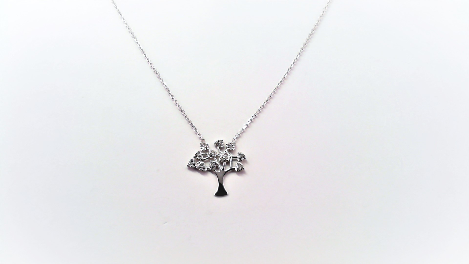 Lebensbaum, Collier mit Behang, 925 Ag rhodiniert, Zirkonia, Anker gefeilt, 42, 3,