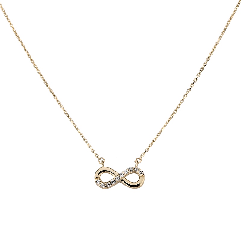 Unendlichkeitszeichen, Collier mit Behang, 585 GG, Zirkonia, Anker gefeilt, Länge: 42, Stärke: 0,9