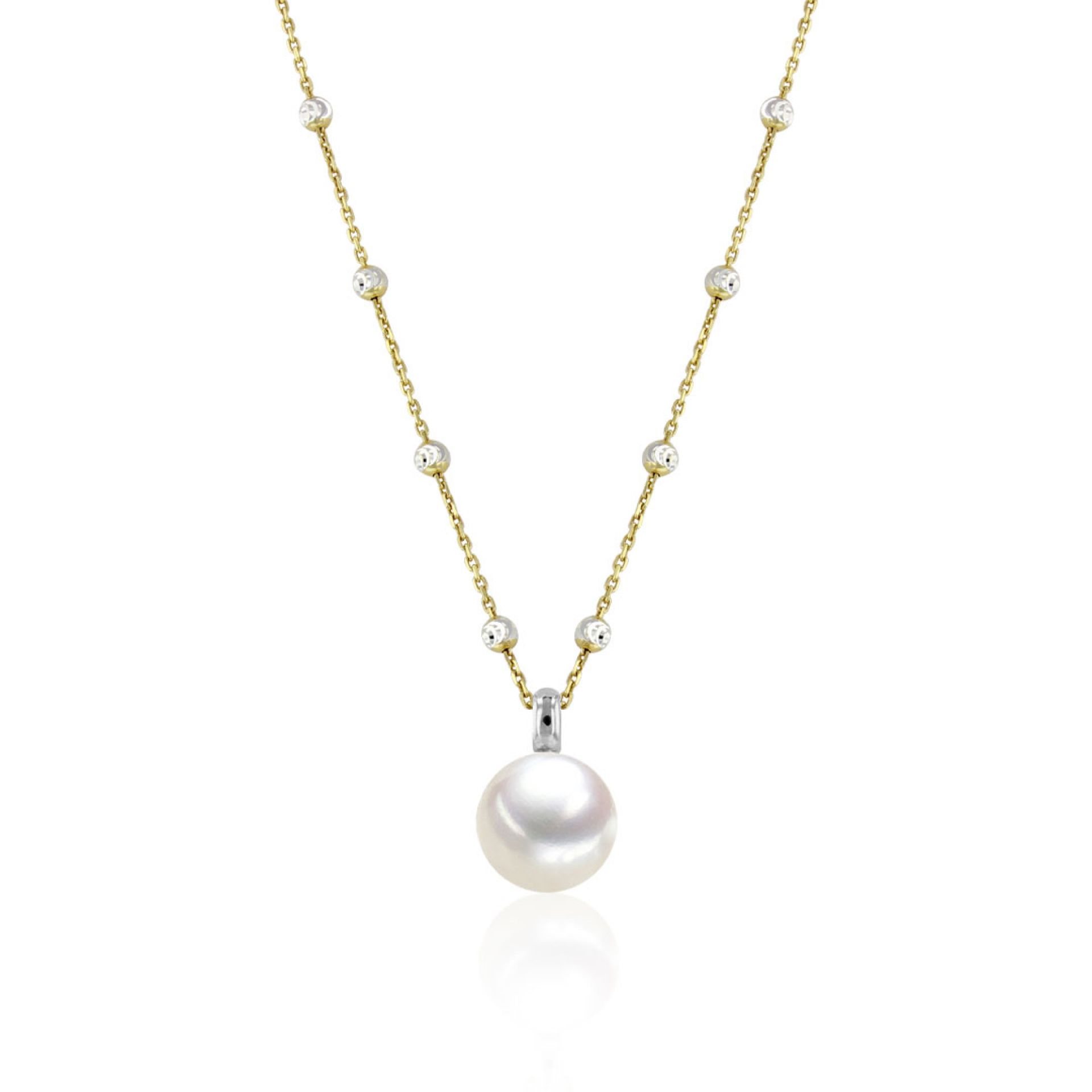 Collier mit Perle, 925 AG bic. gelb/weiss, Süßwasser Zuchtperle, Anker gefeilt, 45, 0,9,