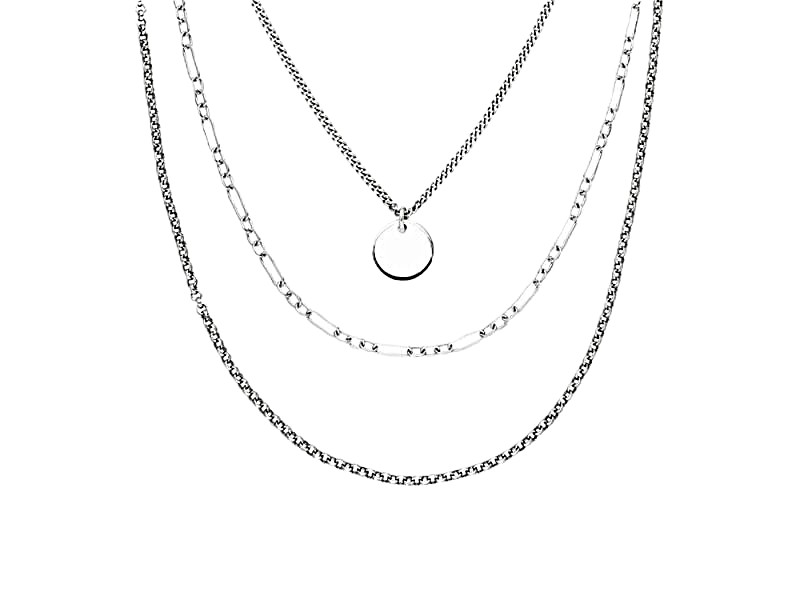 Gravurplatte, Collier ohne Stein, 925 Ag rhodiniert, mehr-reihig, 43, 7, 1,5, 1,5,