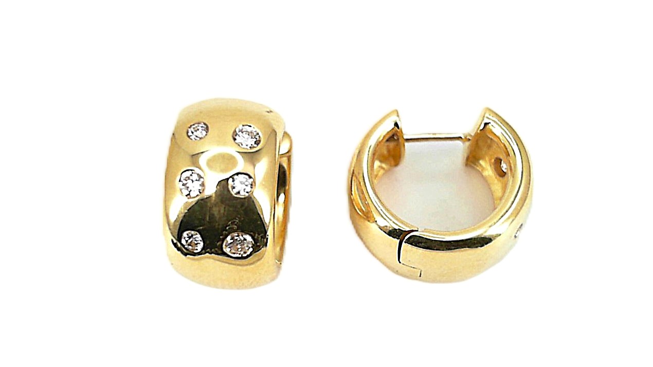 Artikelbezeichnung CreolenLegierung 750 GGBesatz DiamantAnzahl Diamanten 12Diamantgewicht 0,51 ctDiamantqualität TW vsi