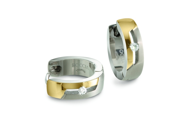 Creolen, Titan Bicolor, Diamant, 2, 0,04 ct, W si, 2,