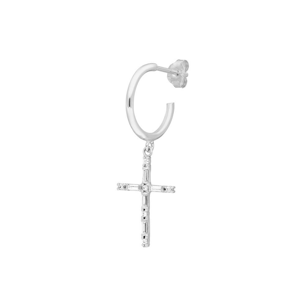 Kreuz, Creolstecker, 925 Ag rhodiniert, Zirkonia, mono, 1,6,