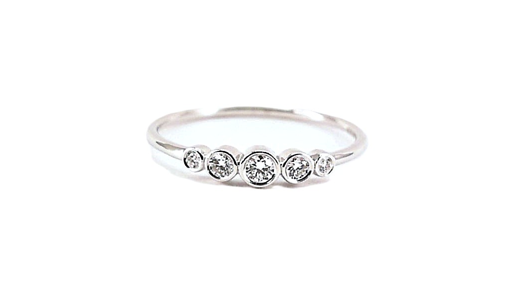 Beisteckring, Damenring Mehrsteiner, 585 WG, Diamant, 5, 0,15 ct, W si,