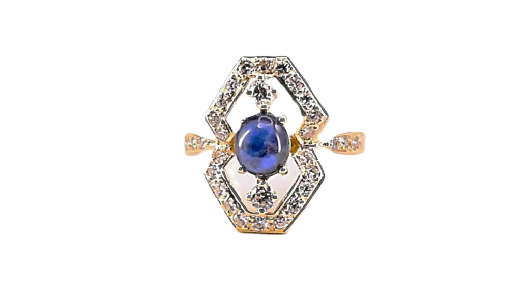 Artikelbezeichnung Damenring MehrsteinerLegierung 750 GGBesatz Diamant SafirMachart FarbsteineAnzahl Diamanten 30Diamantgewicht 0,42 ctDiamantqualität W vs1