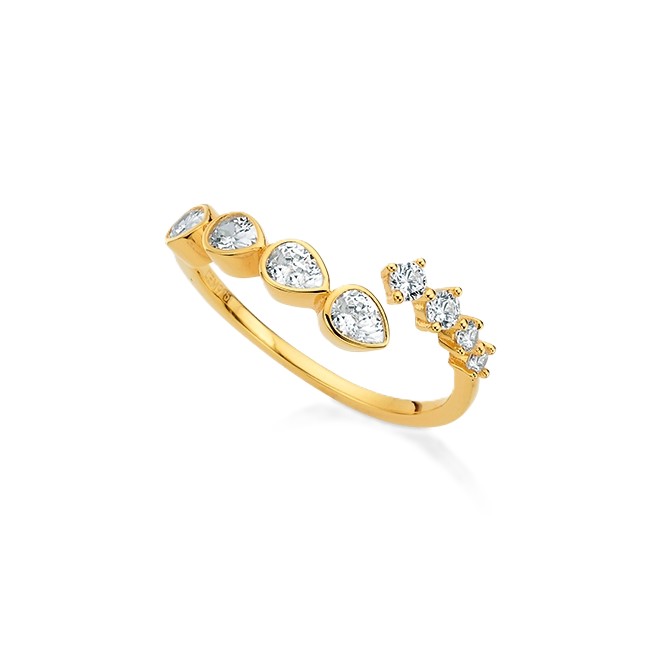 Damenring Mehrsteiner, 925 AG gelb vergoldet, Zirkonia, 1,5,