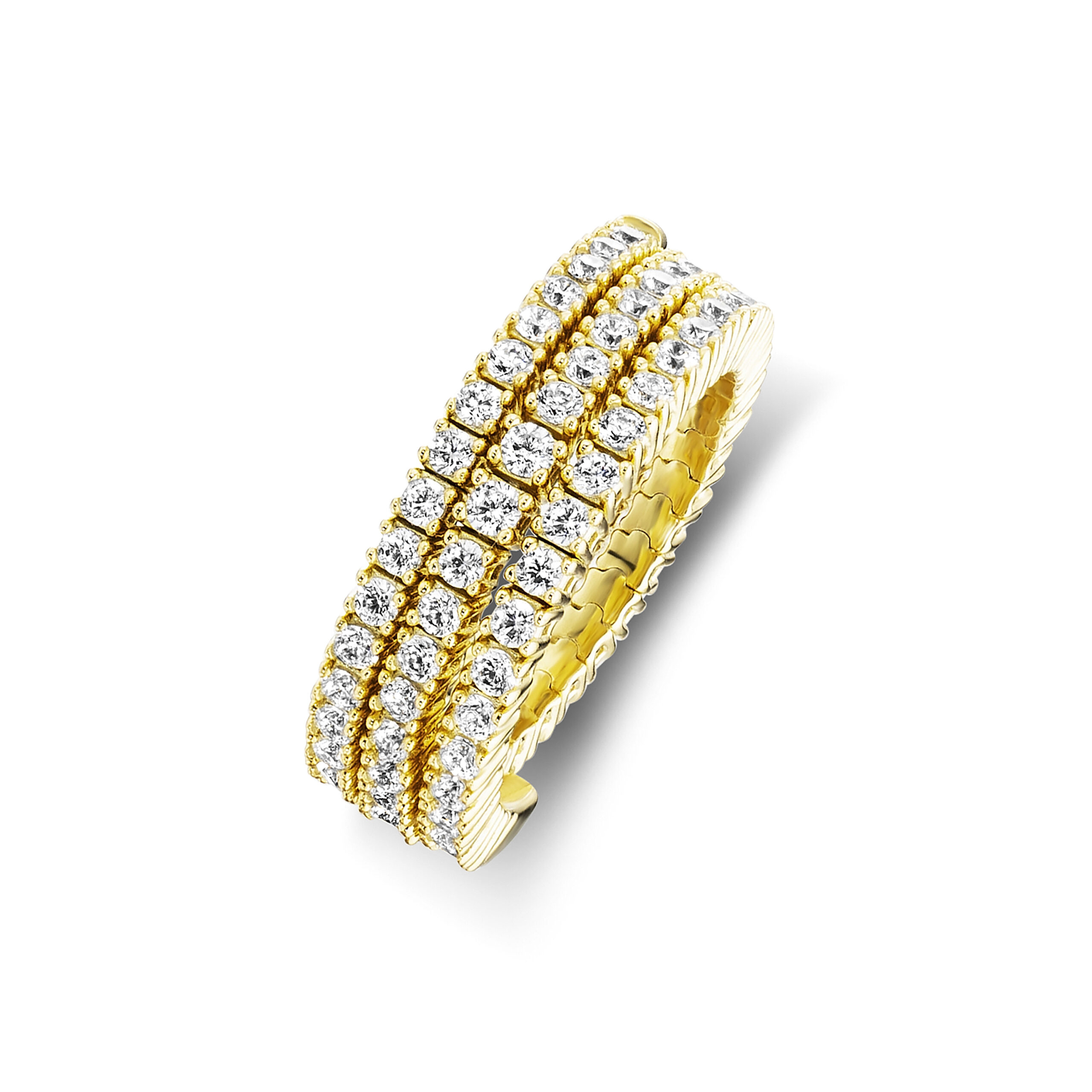 Damenring Mehrsteiner, 925 AG gelb vergoldet, Zirkonia, Flexband, 6,3, 2,5,