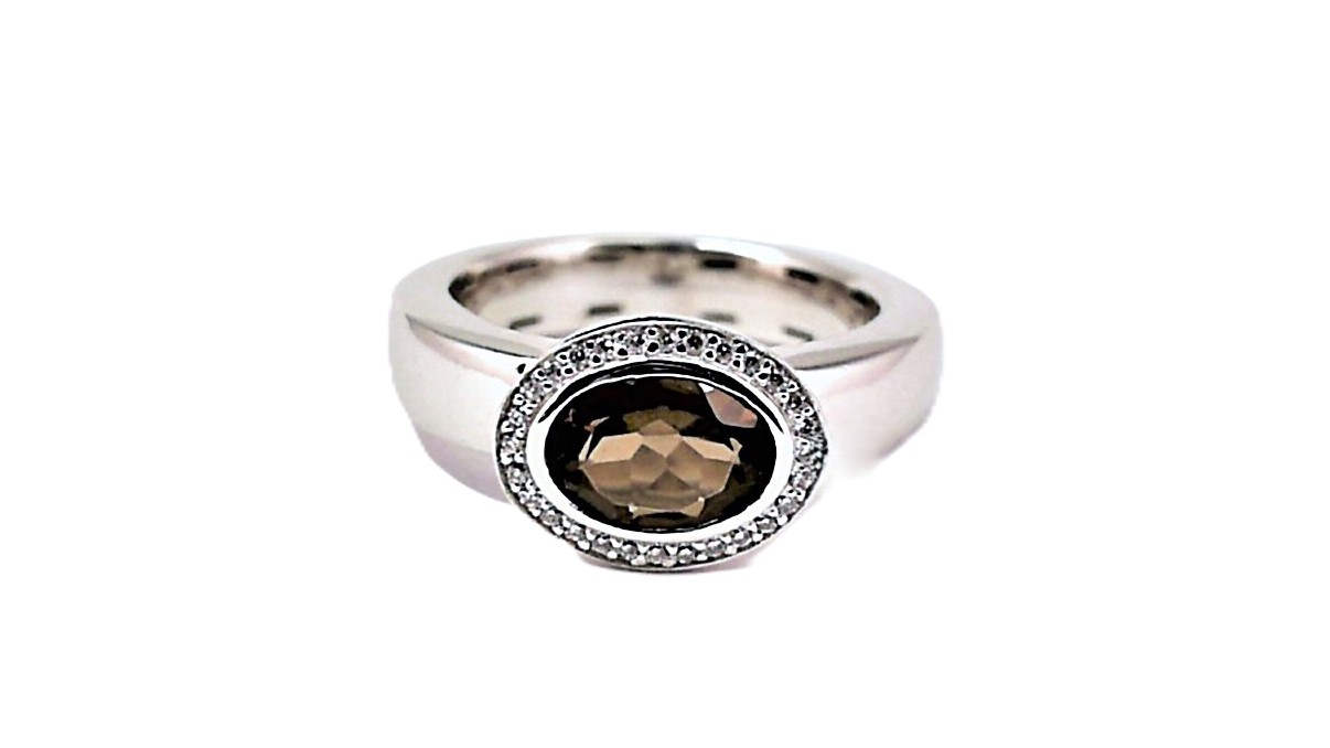 Artikelbezeichnung Damenring MehrsteinerLegierung 925 Ag rhodiniertBesatz Rauchquarz ZirkoniaMachart Farbsteine