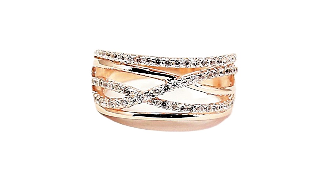 Damenring Mehrsteiner, 925 Ag Rosé vergoldet, Zirkonia,