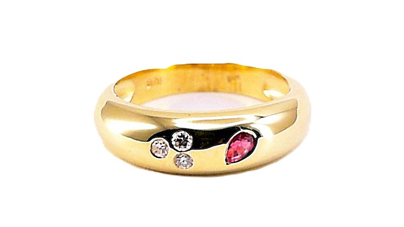 Bandring, Damenring Mehrsteiner, 585 GG, Diamant Rubin, Farbsteine, 3, 0,09 ct, W si,