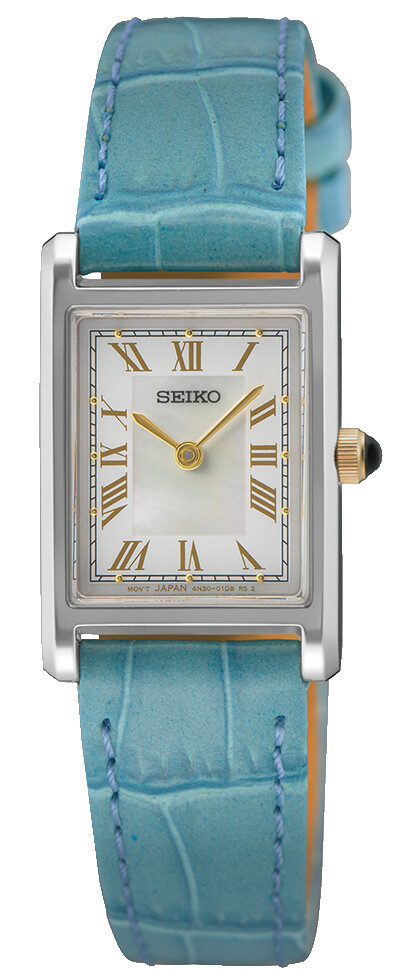 Damenuhr analog, Edelstahl, Lederband, WD: 3, Quarzwerk, Eckig, Sonstiges, Stärke: 7,5