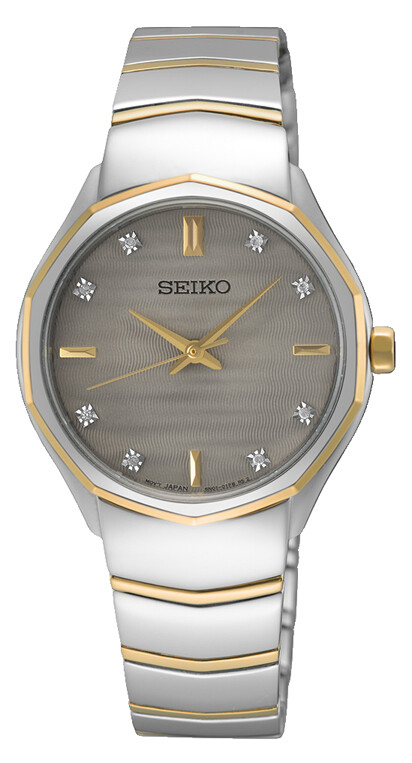 Damenuhr analog, Edelstahl bicolor, Diamant, Gliederband, Wasserdichte: 5, Quarzwerk, Rund, Saphirglas, Sonstiges, Anzahl Diamanten: 8, Stärke: 6,5