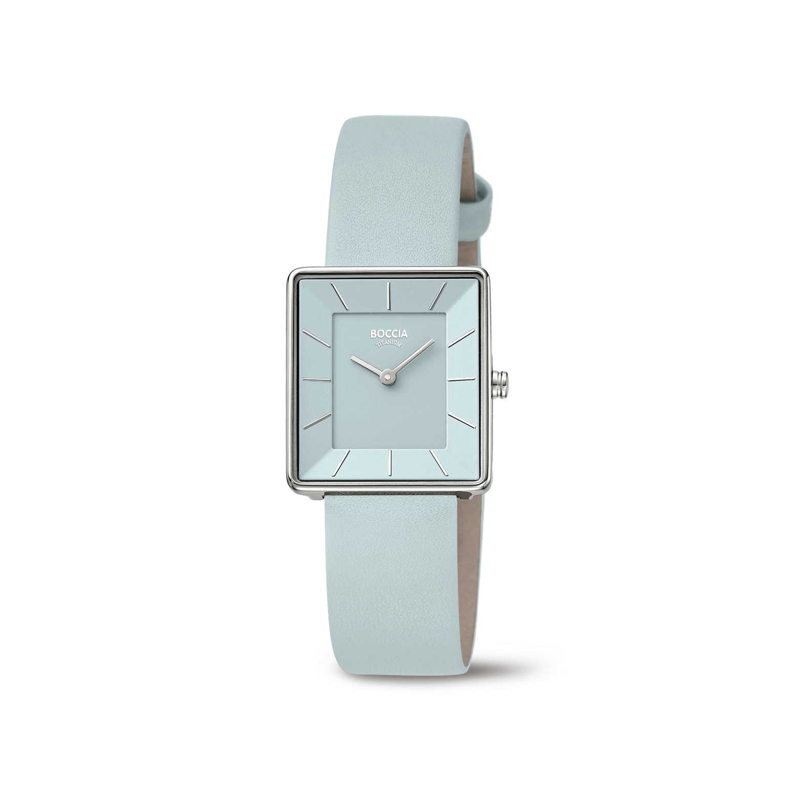Damenuhr analog, Titan, Lederband, 3, Quarzwerk, Eckig, Mineralglas, Symbole, 6,5,