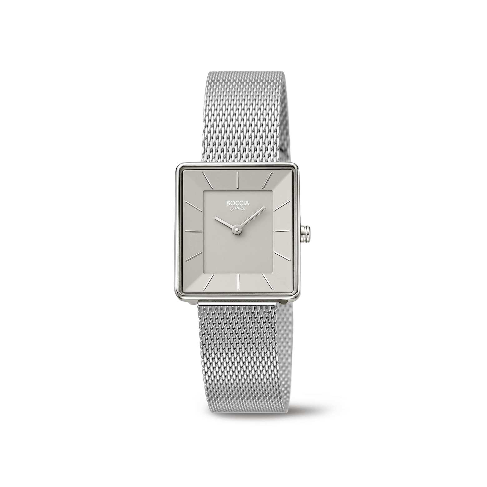 Damenuhr analog, Titan/Edelstahl, Milanaiseband, 3, Quarzwerk, Eckig, Mineralglas, Symbole, 6,5,