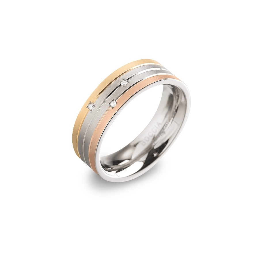 Artikelbezeichnung FreundschaftsringLegierung Titan BicolorBesatz DiamantAnzahl Diamanten 3Diamantgewicht 0,06 ctDiamantqualität W si