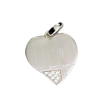 Herz, Gravurplatte, 925 Ag rhodiniert, Zirkonia, 1,6,