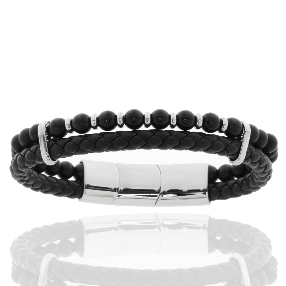 Artikelbezeichnung HerrenarmbandLegierung EdelstahlBesatz AchatMachart LederLänge 21,5Länge Zusatz 1,5Stärke 6