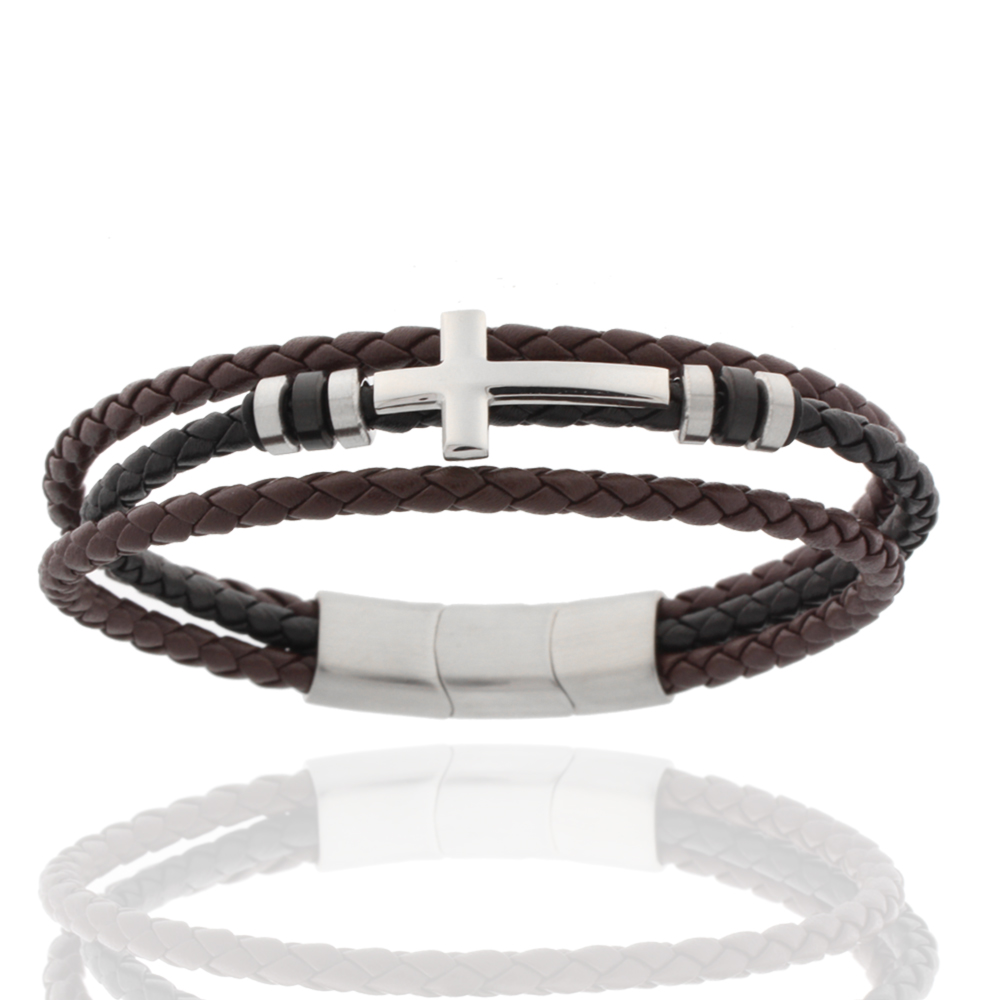 Kreuz, Herrenarmband, Edelstahl, Leder, 21,5, 1,4, 12, 4,