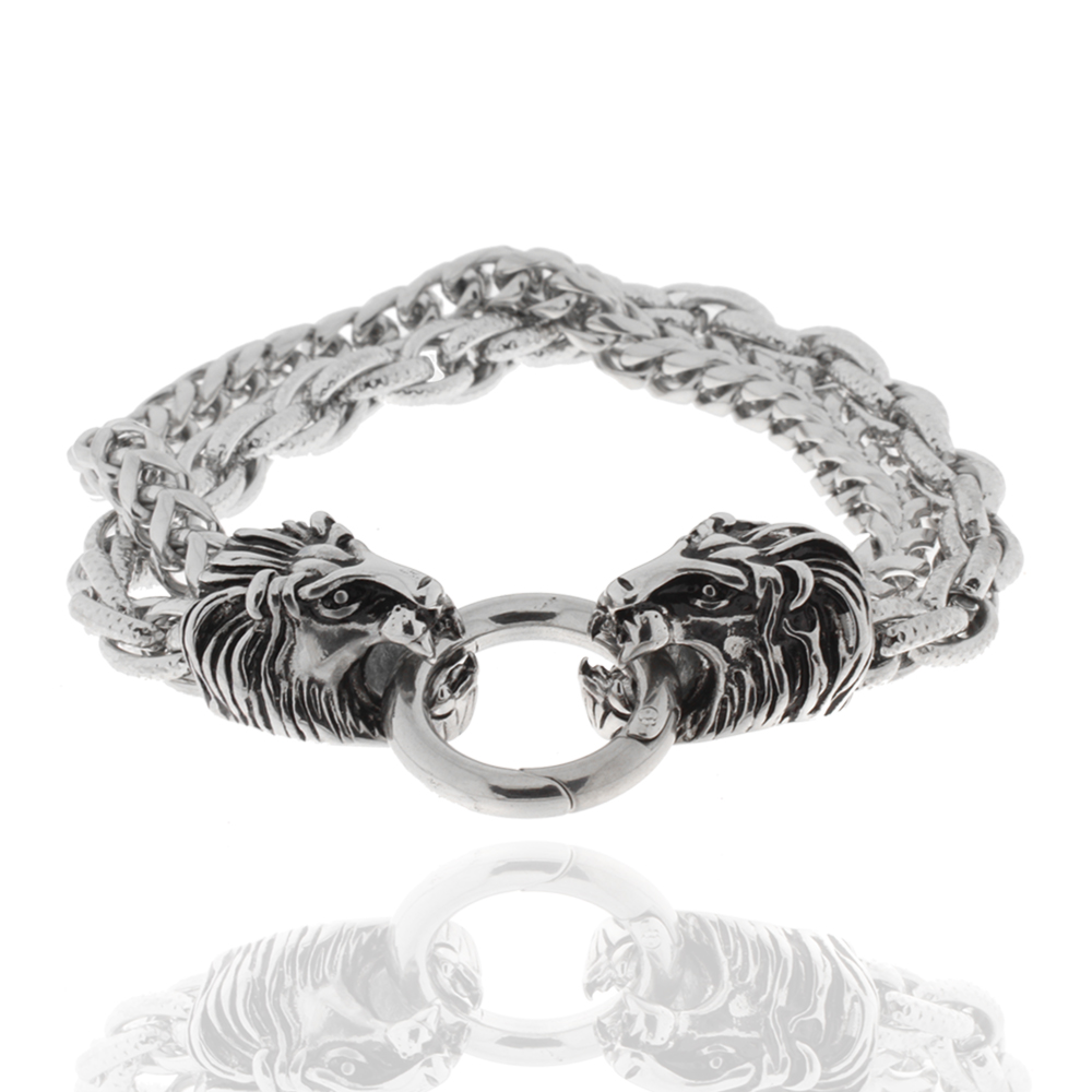 Löwe, Herrenarmband, Edelstahl, 2-reihig, 22, 6,5, 14,