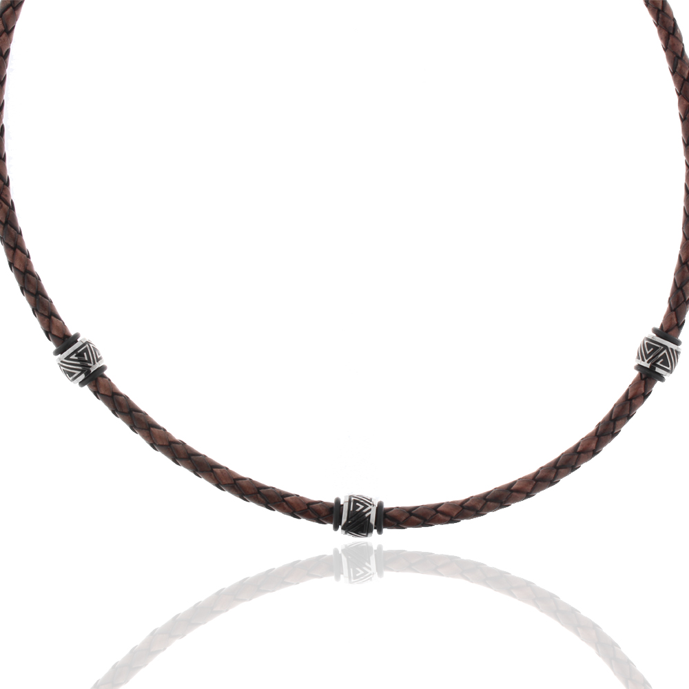Artikelbezeichnung HerrencollierLegierung EdelstahlMachart LederLänge 50Stärke 9,5Stärke bis 5,5