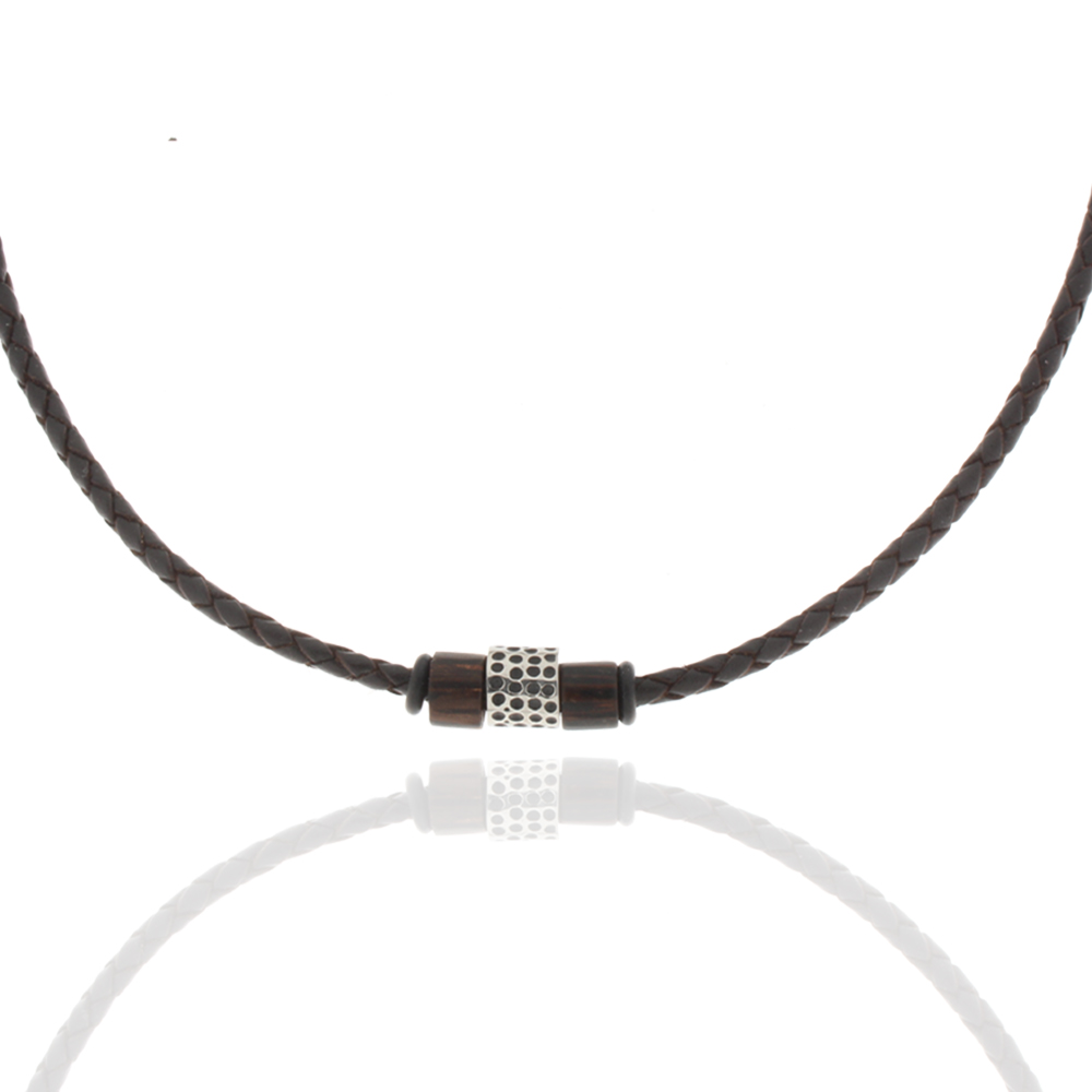 Herrencollier, Edelstahl/Holz, Leder, 50, 5, 9,5, 4,