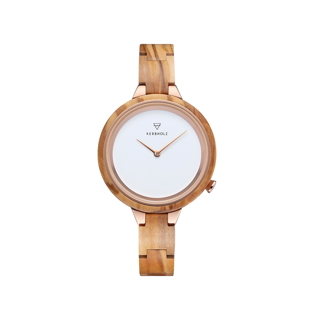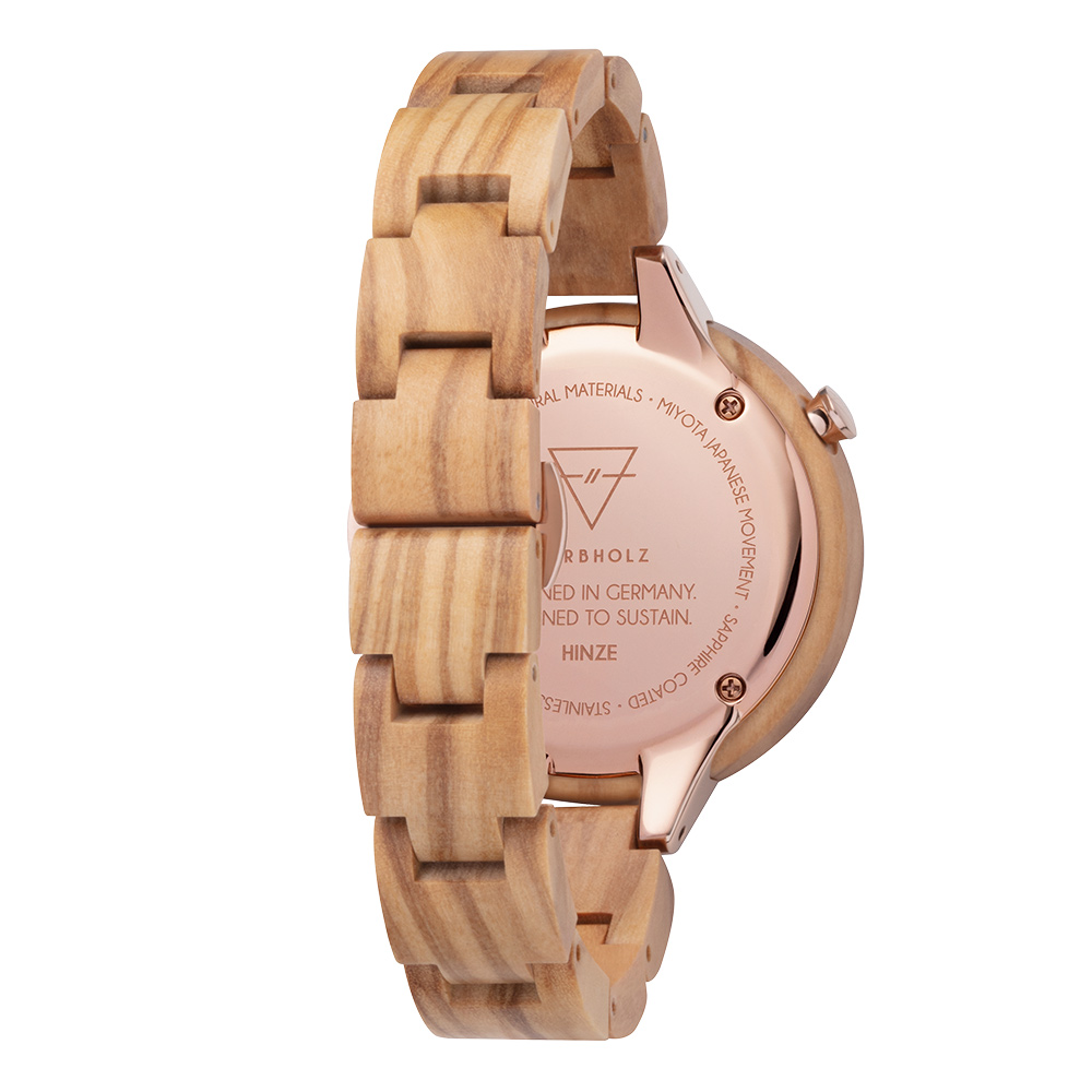 Hinze Olivewood, Herrenuhr analog, Holz, Gliederband, 3, Quarzwerk, Rund, Mineralglas,
