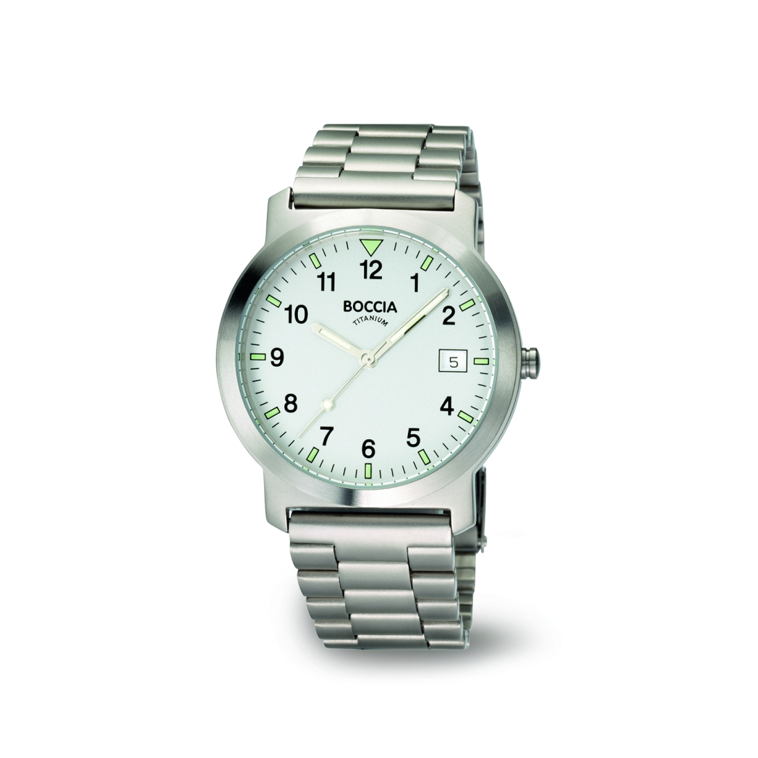 Herrenuhr analog, Titan, Gliederband, 5, Quarzwerk, Rund, Mineralglas, Arabisch, 7,