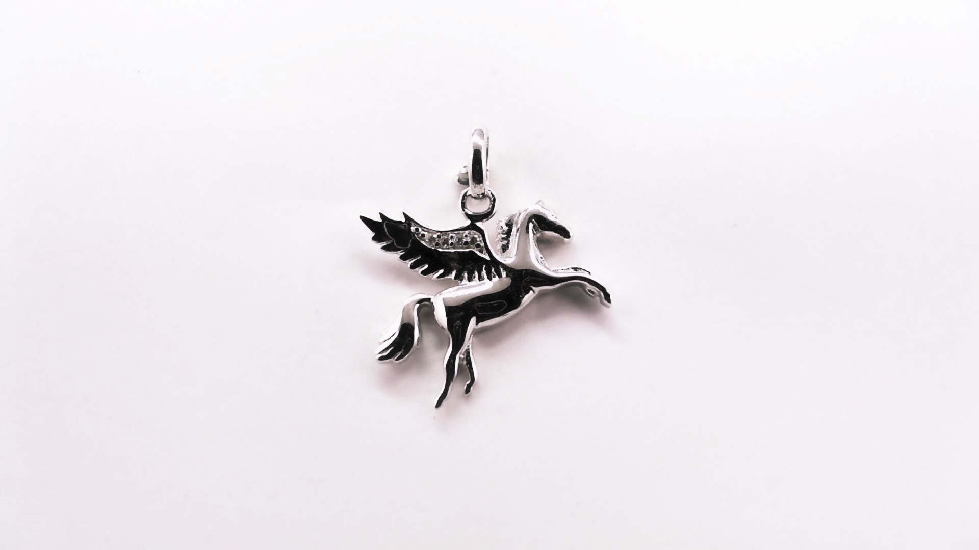 Artikelname/Motiv PegasusArtikelbezeichnung KinderanhängerLegierung 925 Ag rhodiniertBesatz Zirkonia