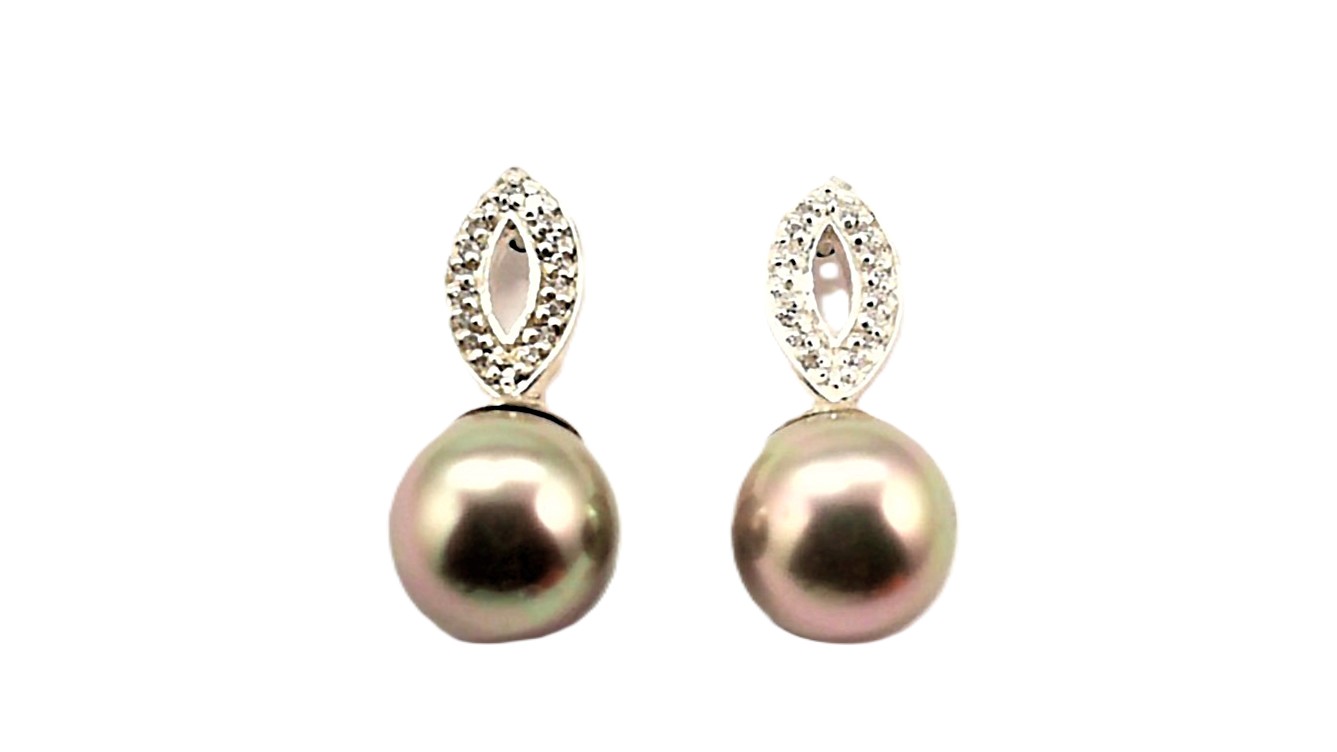 Ohrhänger, 925 Ag, Muschelperle Zirkonia,