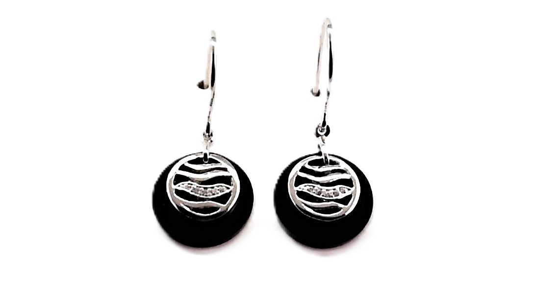 Artikelbezeichnung OhrhängerLegierung 925 Ag rhodiniertBesatz Onyx Zirkonia