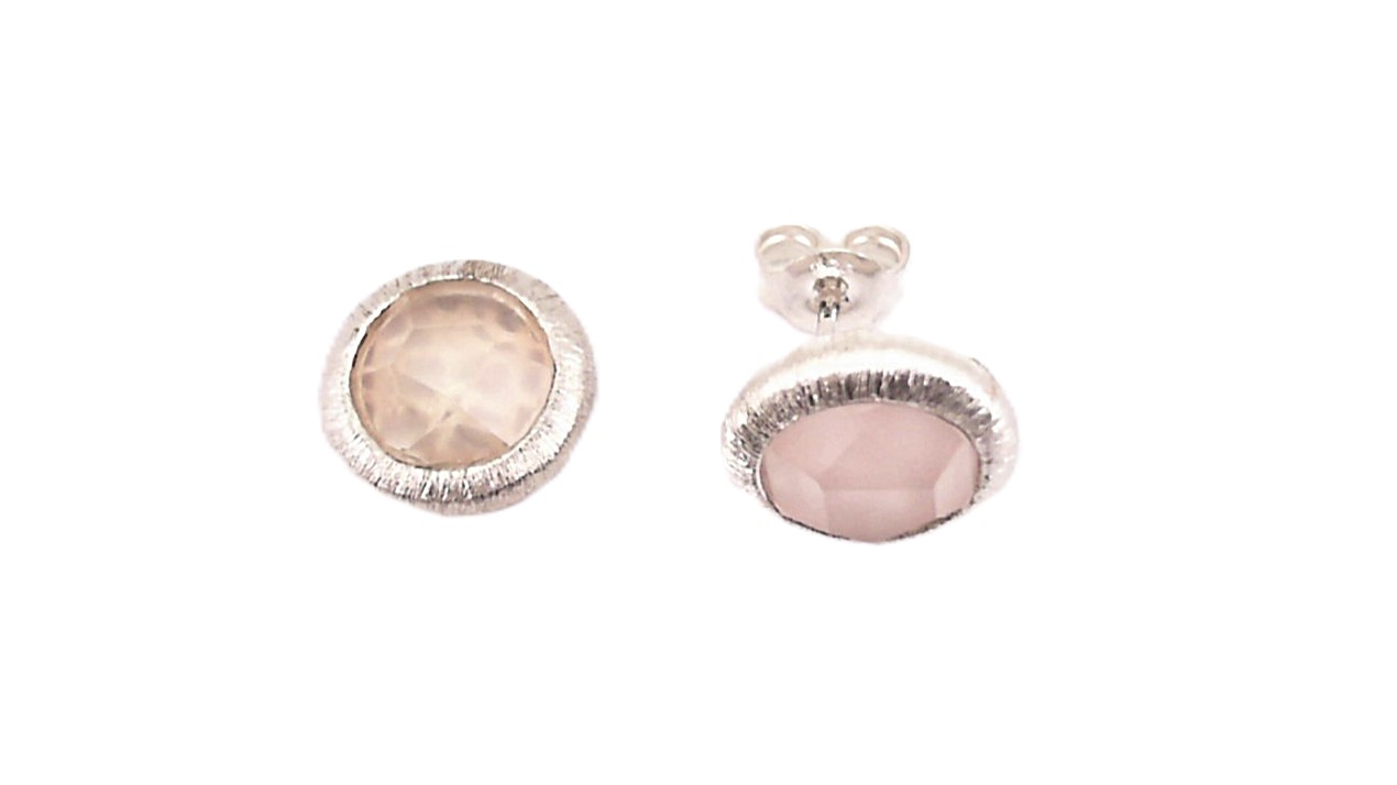 Ohrstecker Einsteiner, 925 Ag, Rosenquarz, Farbsteine,