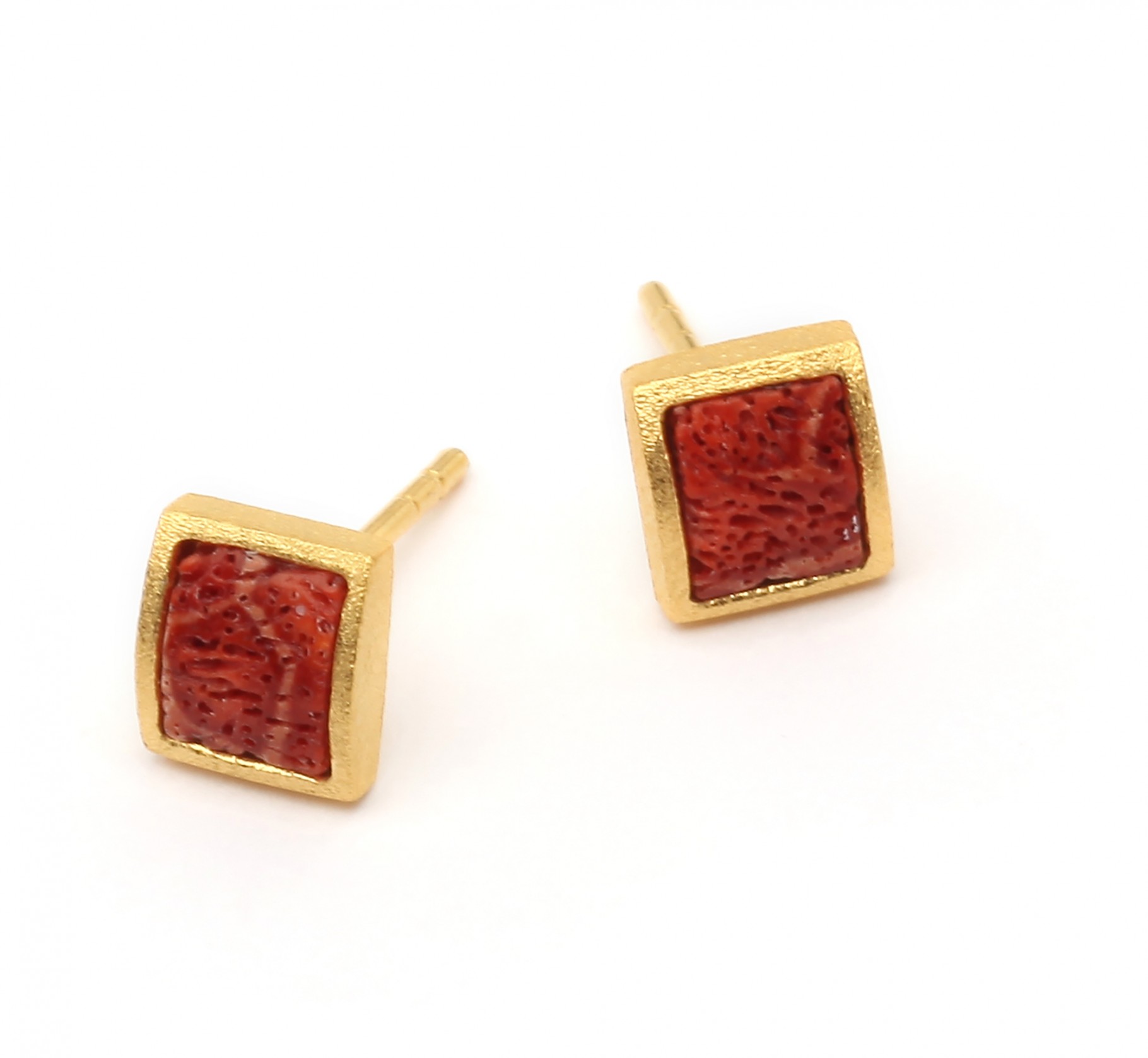 Artikelbezeichnung Ohrstecker EinsteinerLegierung 925 AG gelb vergoldetBesatz WurzelkoralleMachart Farbsteine