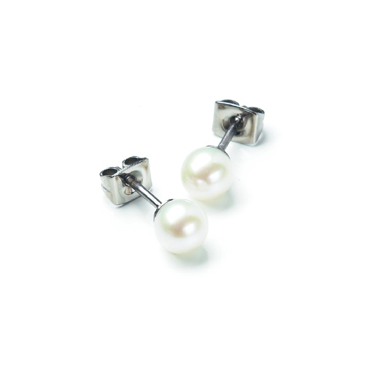Ohrstecker ohne Stein, Titan, Süßwasser Zuchtperle, WD: 10