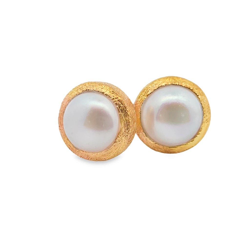 Ohrstecker Perle, 925 AG gelb vergoldet, Süßwasser Zuchtperle,