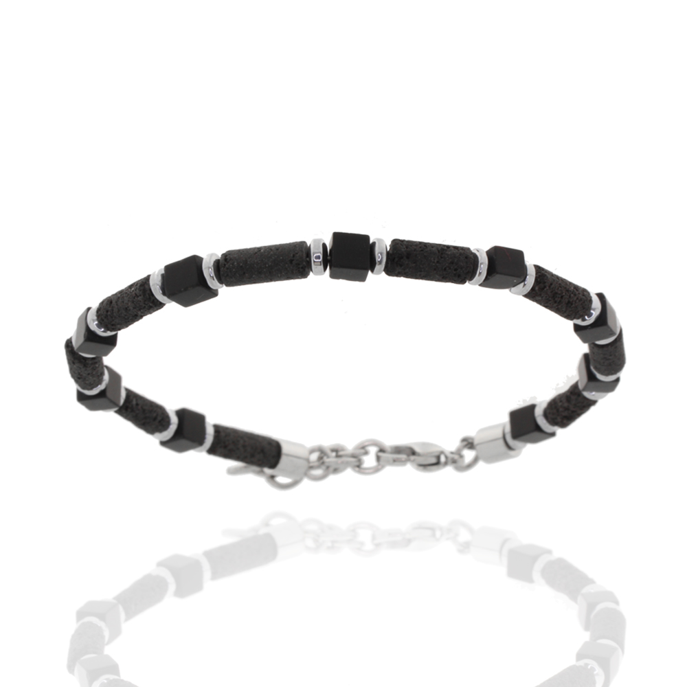 Artikelbezeichnung SteinarmbandLegierung EdelstahlBesatz Lava schwarzLänge 19,5Länge Zusatz 3Stärke 5