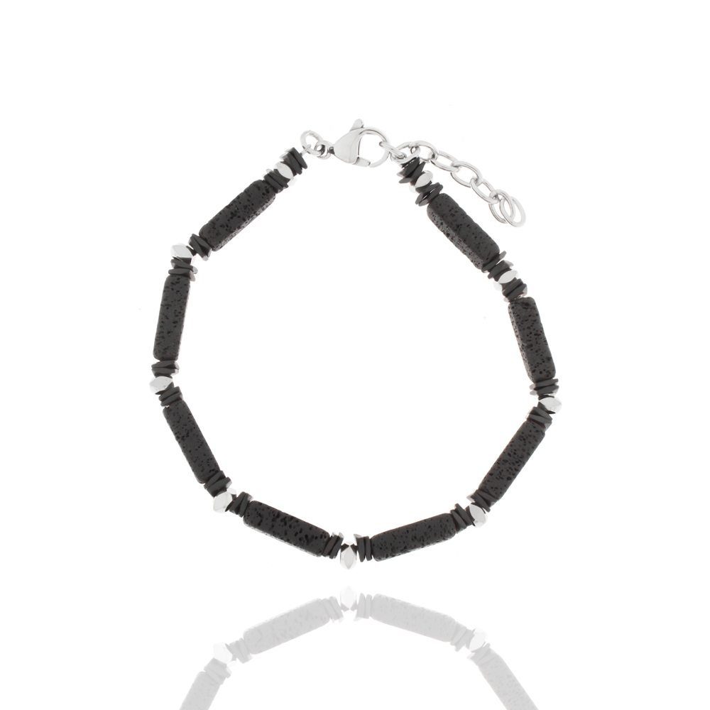 Artikelbezeichnung SteinarmbandLegierung EdelstahlBesatz VulkansteinLänge 19,5Länge Zusatz 3Stärke 4,5