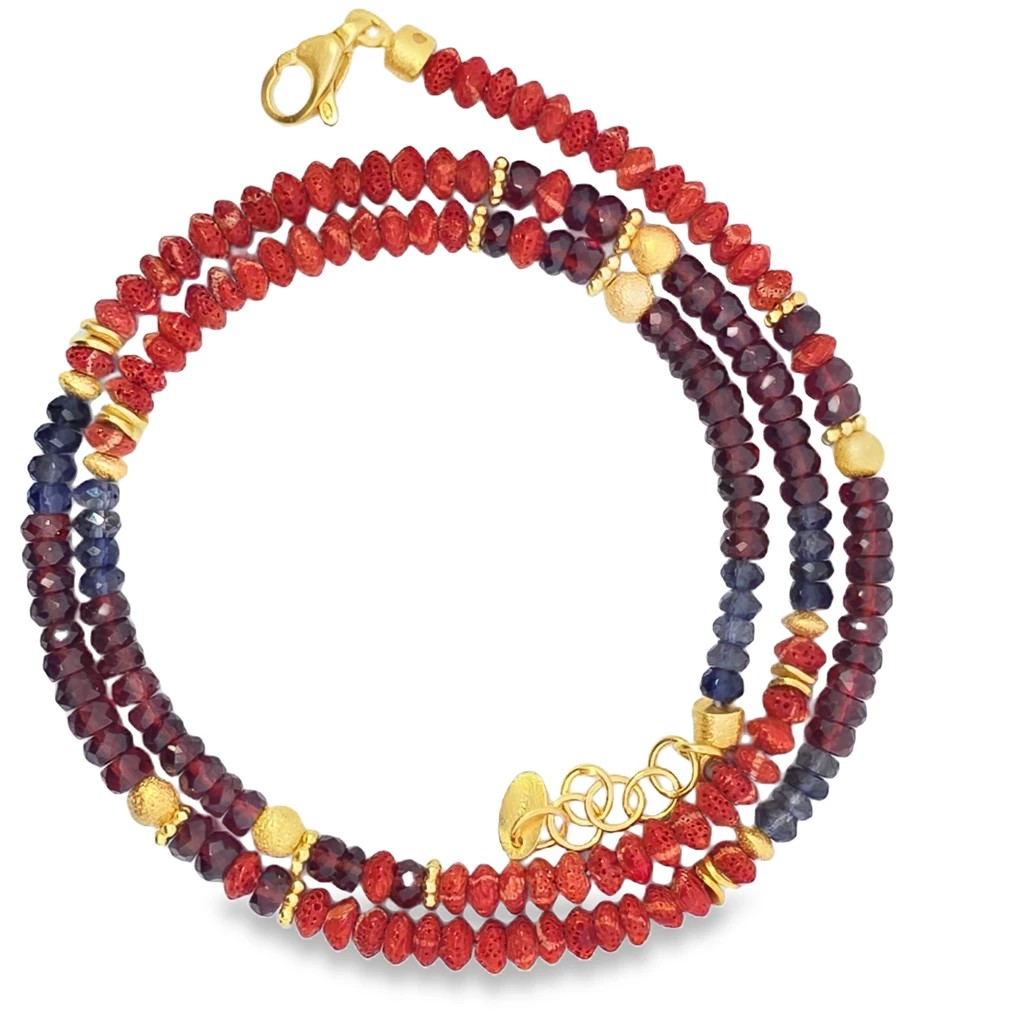 Artikelbezeichnung SteinketteLegierung 925 AG gelb vergoldetBesatz KoralleLänge 45,5Länge Zusatz 2,5Stärke 4