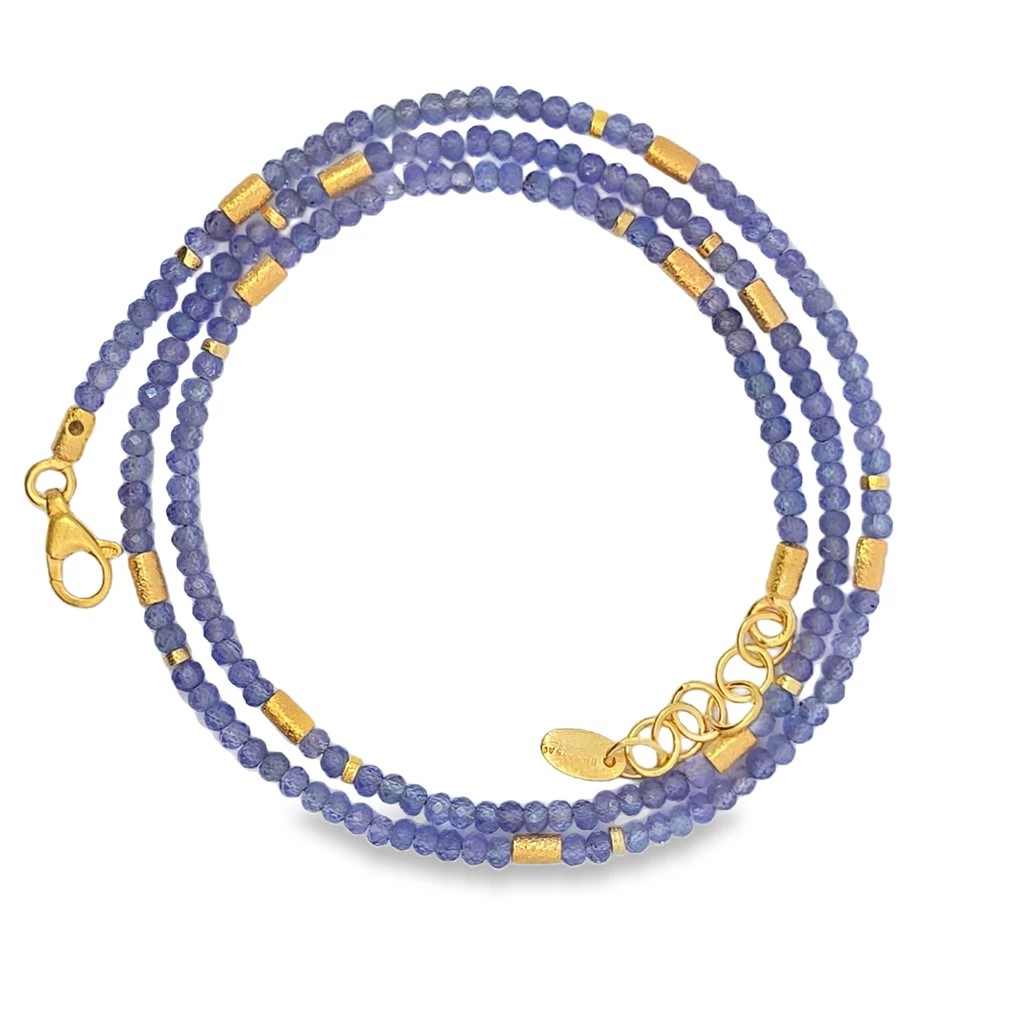 Steinkette, 925 AG gelb vergoldet, Tansanit, 45, 2, 2,7,